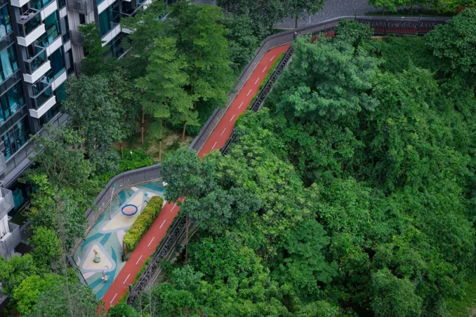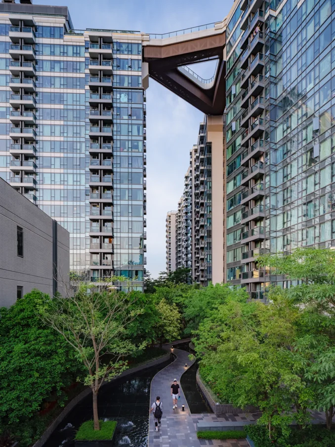 Le Pont also features an interconnected Sky Bridge linking all buildings at the rooftop level—an architectural hallmark that mirrors the undulating flow of the mountain ridges. Much like a summit ascent, this elevated pathway offers residents an unparalleled panoramic view of the skyline and surrounding greenery. Complementing this experience, the Forest Pavilion and Tea Pavilion draw inspiration from traditional mountain rest stops, providing secluded retreats for residents to unwind while embracing uninterrupted vistas.