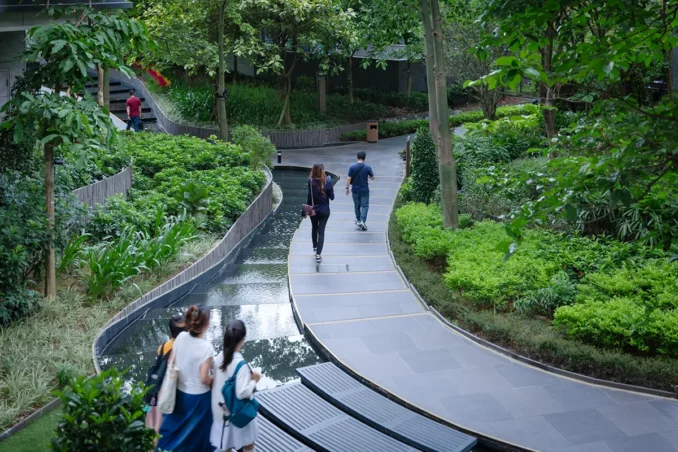 The planting strategy at Le Pont embraces a subtropical forest concept, integrating native plant species with seasonal flowering varieties to ensure sustainable growth while offering a dynamic visual tapestry that evolves throughout the year. By thoughtfully curating vegetation that thrives in Hong Kong’s climate, the landscape fosters ecological resilience and aesthetic vibrancy.