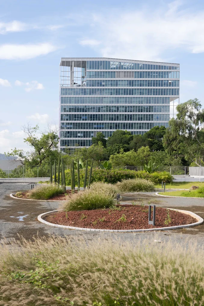 Through LOOP above the first floors and green roofs/vegetated facades, the outdoor areas attached to buildings are interconnected with the landscape, creating an impressively roaming route.