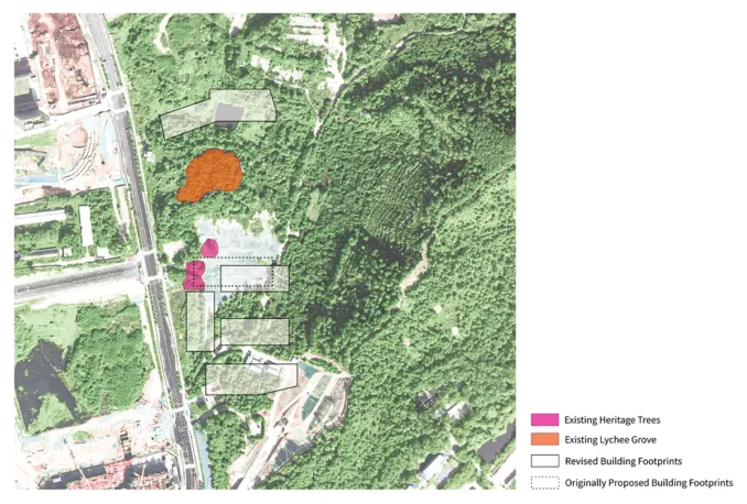The campus of Shenzhen University of Advanced Technology (SUAT) occupies a distinctive 56-hectare site straddling ecologically sensitive foothills and the Guangming Science City. The area contained remnants of a former dairy factory, primary vegetation coverage and an existing reservoir ca. 18,000 sqm, which was constructed in 1966 to manage mountain flooding and agricultural irrigation, before its designation as the site for SUAT University—a research-oriented institution.
