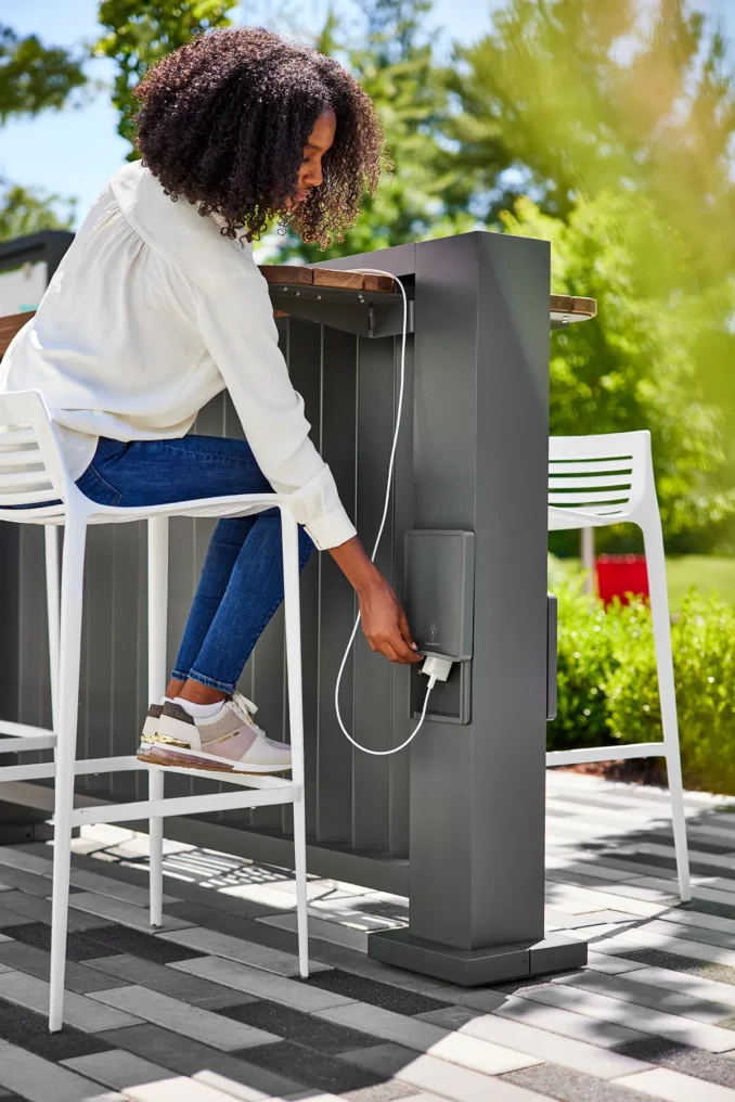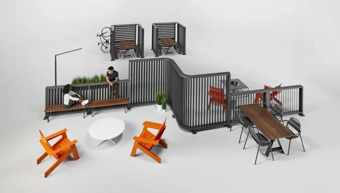Designed by Landscape Forms in collaboration with KEM STUDIO, Backdrop offers a new and uniquely versatile way to create welcoming outdoor destinations. Yet there’s more to creating inviting spaces than simply physical delineation. Equally important is the human, emotional component—how these spaces make people feel, where these spaces appear in their daily lives, and the types of moments these spaces help inspire. In the places we enjoy most, the right physical characteristics help to create environments that elicit the feelings, memories, conversations, and connections experienced within. The space sets the mood and becomes a “backdrop” for life and living.