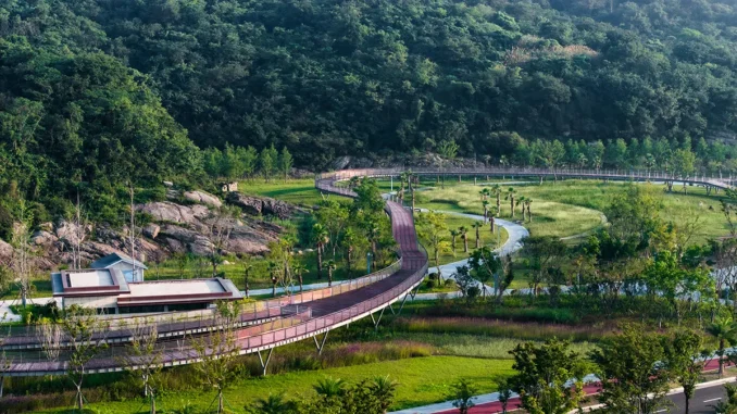 Given the unique location of Baisha Bay’s estuary, the design connects Chuanjiao Mountain, Dadao Mountain, and Baisha Mountain to form a unique greenway loop around Baisha Lake, encompassing the landscape features of sea, rock, sand, forest, and beach. Activities such as marine science education, rock and mountain exploration, enjoying the sunny beaches, countryside forest walks, and water sports experiences are set up, forming distinctive coastal ecological education and urban living spaces through four thematic areas: exploring the mountains and sea, enjoying the white beaches, weaving through the forests, and engaging in beach sports.