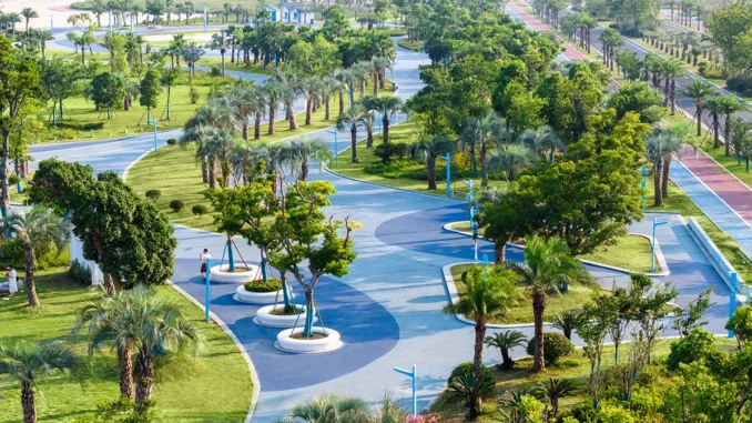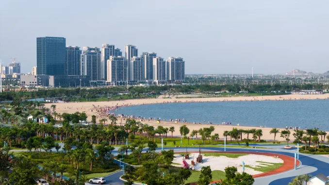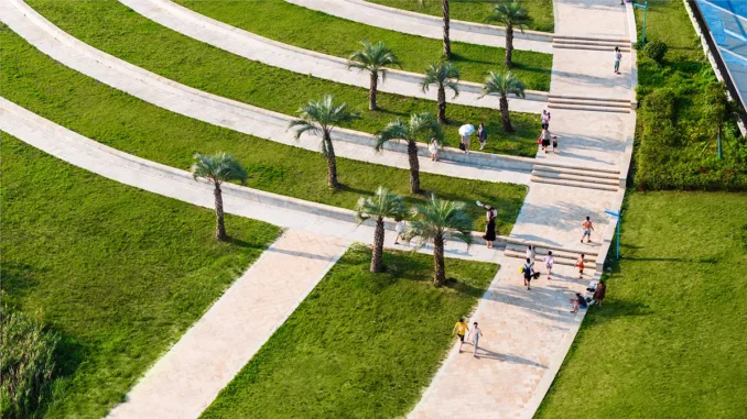 Baisha Bay, which serves as the entrance to Taizhou Bay, features a unique arc-shaped coastline that gives Baisha Bay Park a distinct edge. The 2.74-kilometer stretch of pristine white sand, together with the sea dike, lush vegetation along the bay, and the rugged bedrock coastline, have been rejuvenated and merged to create a unique ecological coastal area in Baisha Bay. This effort has revitalized the previously damaged coastal ecology, dramatically improving the quality and health of the water nearby. Additionally, the project has boosted the area’s wetland ecosystem, making it a thriving habitat that draws in protected wildlife like Fulica atra and the Anas zonorhyncha. This not only broadens the ecological diversity of Baisha Bay but also strengthens its natural stability.