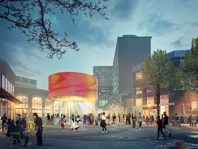 Garden Square amplifies its role as Bramptonʼs cultural living room. The Rosette Ring, an immersive 360° LED screen, anchors the space and establishes a new landmark for performance, media, and everyday use. The Ring frames the Rose Theatre, strengthening the bond between building and square, and activates an environment where digital art, live screenings, and cultural events thrive.