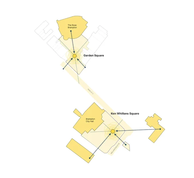 Together, the two squares weave a connected civic framework that fuses tradition with innovation. Designed for flexibility and inclusion, they support everything from quiet moments to large-scale festivals, markets, and civic ceremonies. The result is a downtown public realm that feels unmistakably Brampton yet open to the world—an enduring cultural heart where symbolism becomes structure, infrastructure, and atmosphere.
