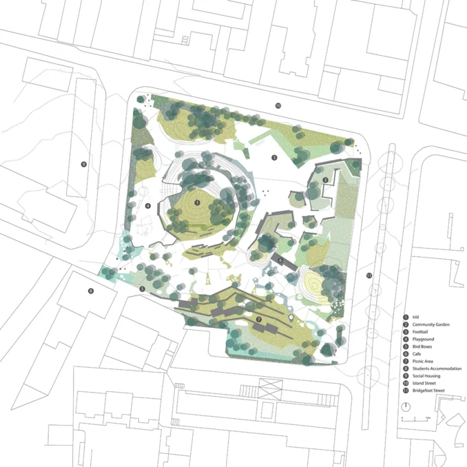 The park addresses climate resilience in a synthesised and beautiful way, laying the foundation for aesthetic and even legislative change in Ireland and at the same time creates a space for people to engage with the ‘natural’ world right on their doorstep, in a neighbourhood with a very low public open space metric.