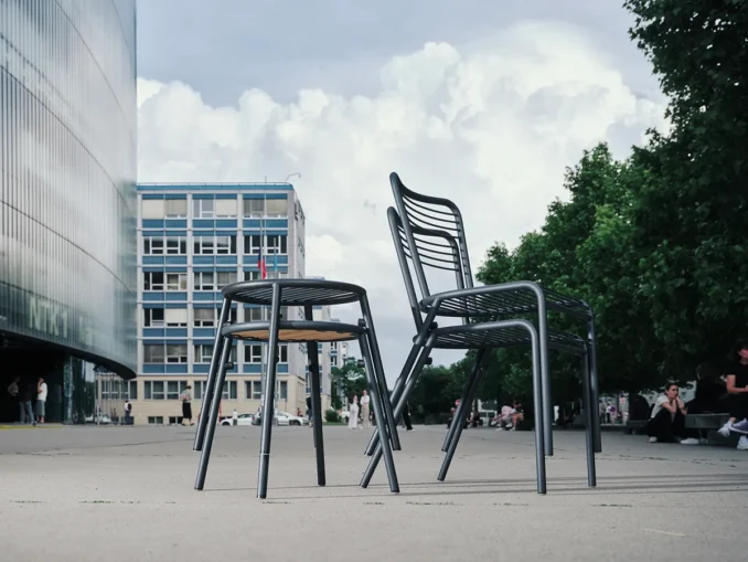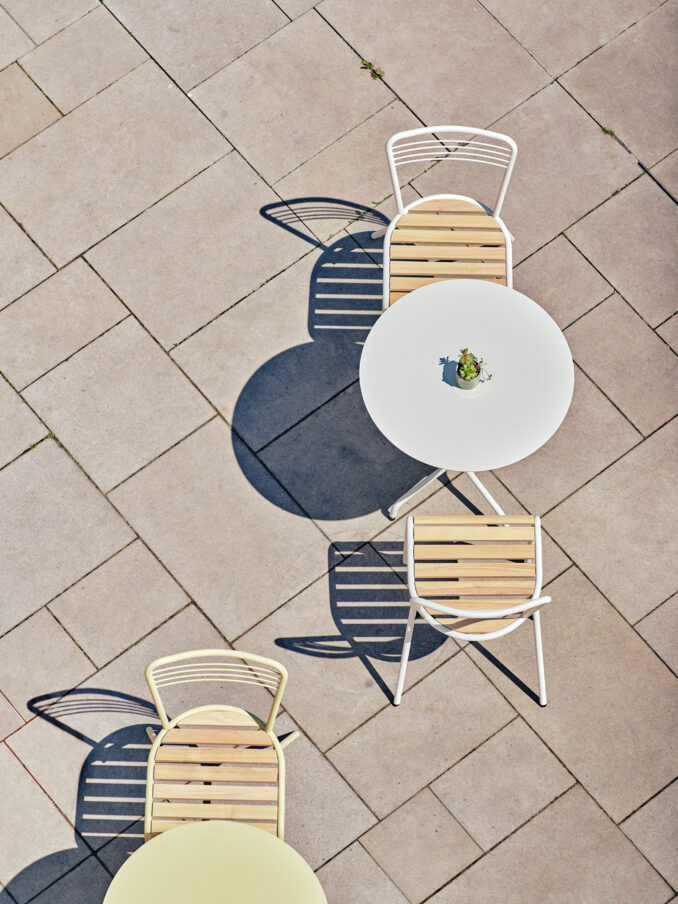 The collection is primarily designed for lively urban streets that function both day and night, are dynamic, and frequently change according to the situation. It’s ideal for café terraces thanks to its low maintenance and stackability. It also fits well into parks or semi-public and private spaces such as university campuses or company premises.