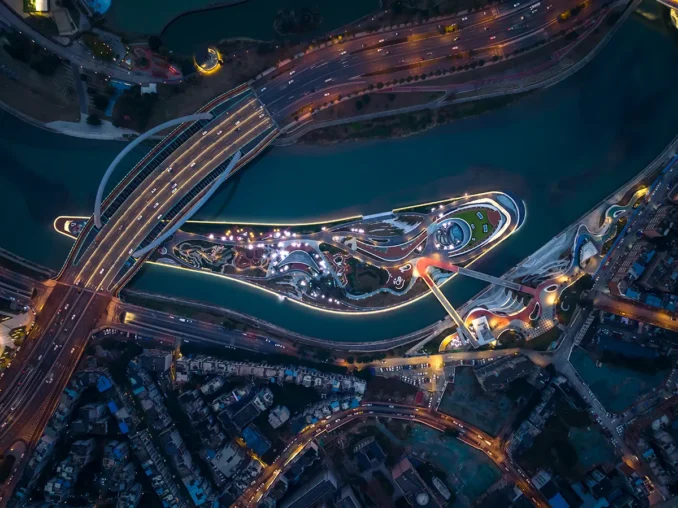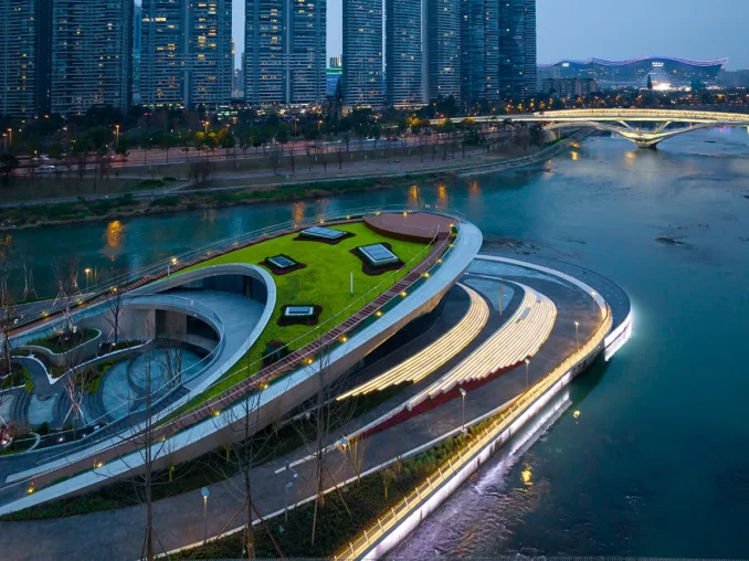 “Integrated Island-City, Unified Island-Shore” Guided by this vision, the park organically connects the Jinjiang Ecological Corridor, Tianfu Greenway System, and surrounding urban networks. It functions as a vital organ within Chengdu’s “Park City” fabric while becoming a luminous landmark on Jinjiang Century Bay.