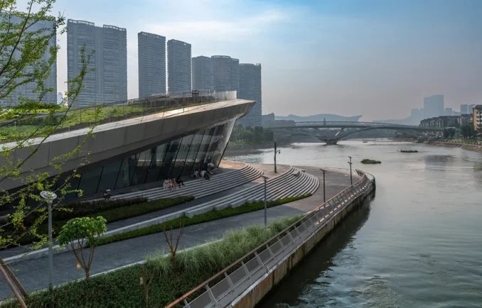 Adjacent to the historic Zhonghe Old Town, the park acts as Chengdu Hi-Tech Zone’s eastern “spearhead” across the Jinjiang River. Years of development have formed a vibrant C-shaped riverfront belt, framed by the riverside greenway system, Century City Convention Center, Jiangtan Park, the iconic Wuchazi Bridge, and Hudie Bridge. This project completes the final link in this Emerging Art Corridor.