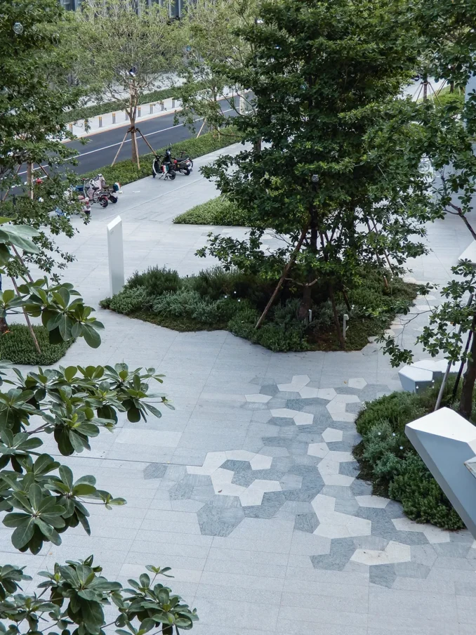At the heart of the design is the concept of lichens, unique hybrid organisms found in everyday environments. As symbols of resilience and symbiosis, lichens inspired the project’s spatial identity, shaping patterns woven into plazas, pathways, and courtyards. This design language celebrates often overlooked aspects of nature while inviting Shenzhen’s residents and visitors to experience their urban environment in new and imaginative ways.