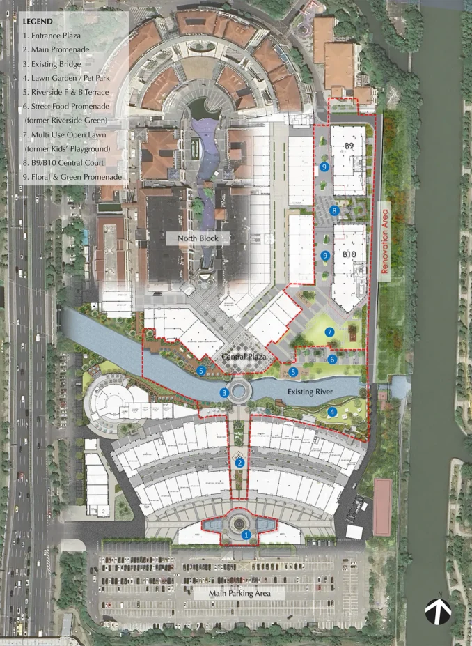 - Redevelopment of Buildings B9/B10 and surrounding zones, including new construction to create anchor retails for the mall.