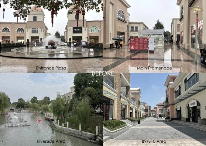 Through strategic interventions—upgrading entry sequences, enhancing promenade and riverside landscapes, and redeveloping the B9/B10 zone—Bailian Outlets Plaza has been redefined as more than a shopping destination. It now offers an inviting outdoor environment that extends the shopping experience beyond retail.