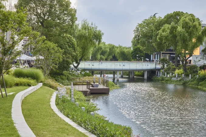 While the mall has achieved commercial success, the outdoor spaces now appear outdated. They were originally planned with a focus on circulation and traffic management and stand in sharp contrast to the new outlet malls emerging around Shanghai, which offer richer and more immersive outdoor environments. In addition, the site is vast—approximately 600 meters north–south and 300 meters east–west—and is traversed by a river that constitutes a valuable natural amenity. Nevertheless, the existing site configuration made little use of this environmental asset.