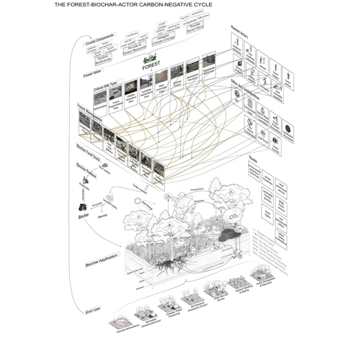 I then proposed a FOREST-BIOCHAR-ACTOR CYCLE, where forest surplus and residue work as biochar feedstock, and biochar are applied to forest soil as problem-solving implement. In this cycle, job positions are created and human actors such as biochar producers, harvesters, and volunteers are included.