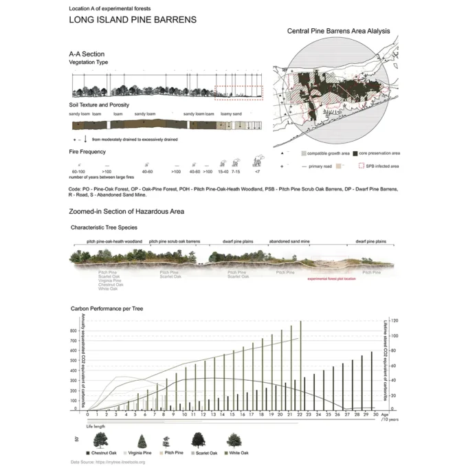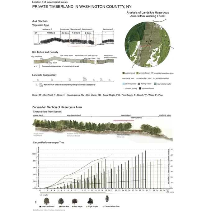 Two characteristic sites with distinctly urgent needs of forest improvement or conservation are chosen to locate experimental forests: Long Island Pine Barrens and Private Timberland in Washington County.