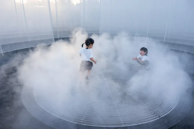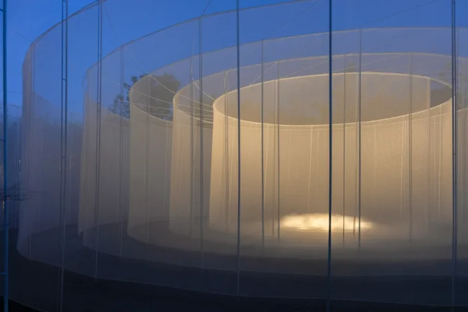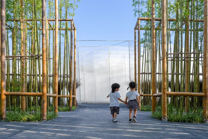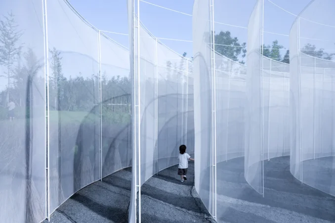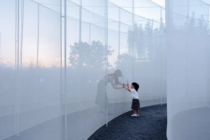 The garden is like an ethereal maze, attracting visitors to explore the depths and try to find each other. Through the “Lantern” we hope that natural phenomena can reveal their evocative presence here – with small visitors running after each other, both fading and emerging from view, searching for a way out. It’s a joyous search. Maybe we’re all searching?