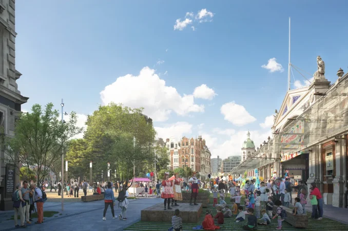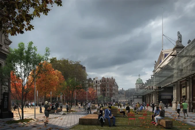 Smithfield’s transformation is grounded in climate resilience. The project responds directly to the City of London’s Climate Action strategy, embedding adaptive design into every element of the public realm.